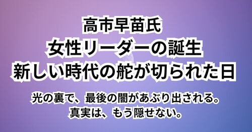 こんにちは、運命分析師のロミレーです。今回は、 女性初の自民党総裁・高市早苗さんの誕生 について、書きたいと思います。 以前「いつか女性リーダーが日本を導く時が来る」とお伝えしてきましたが、それがまさかこのタイミングで実現するとは――私自身、少…